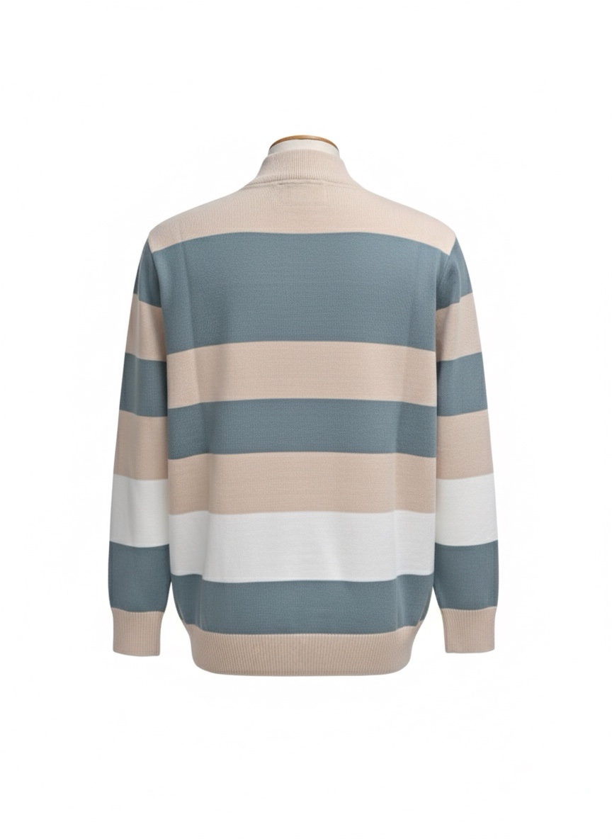 Textured Grey Quarter-Zip Pullover with Striped Accent