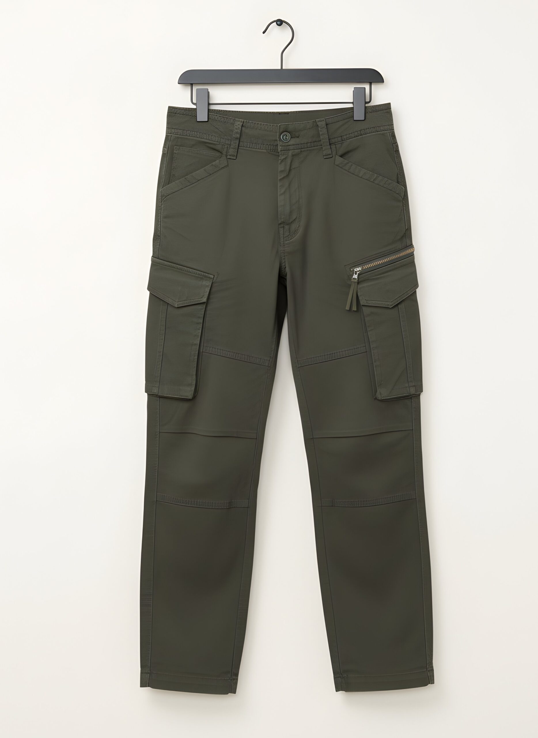 Khaki Straight -Fit Cargo Trousers with Webbing Detail
