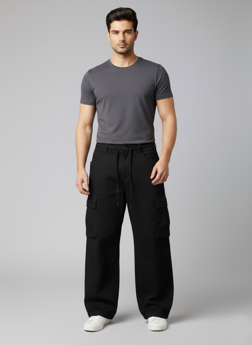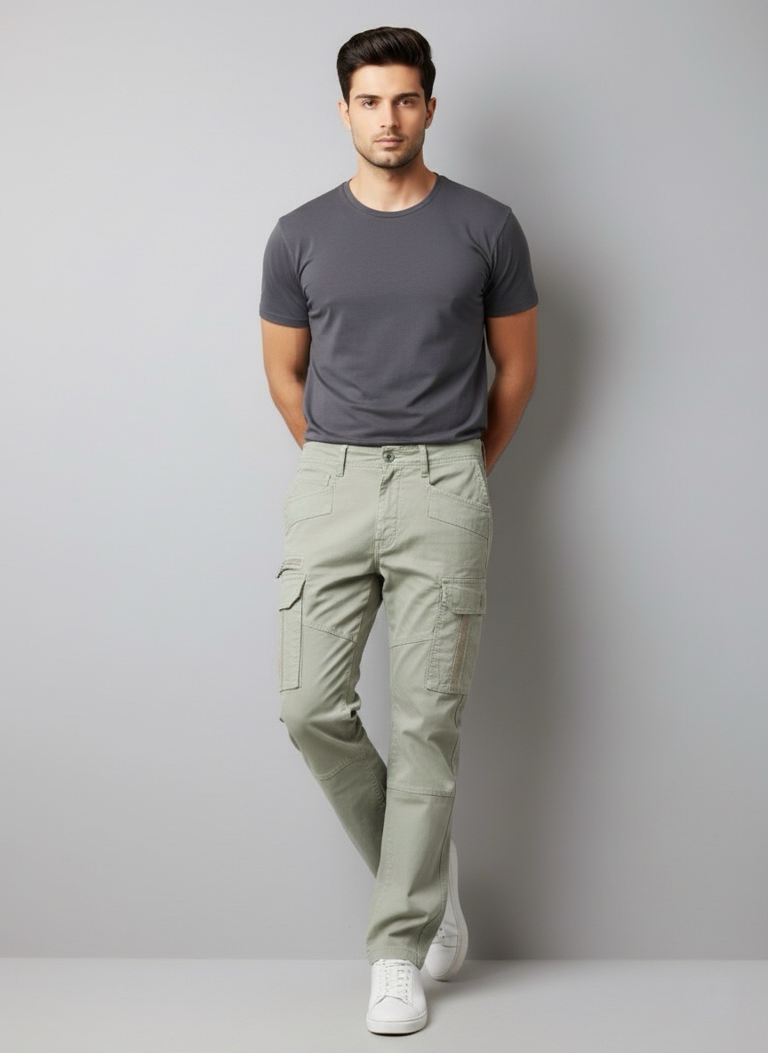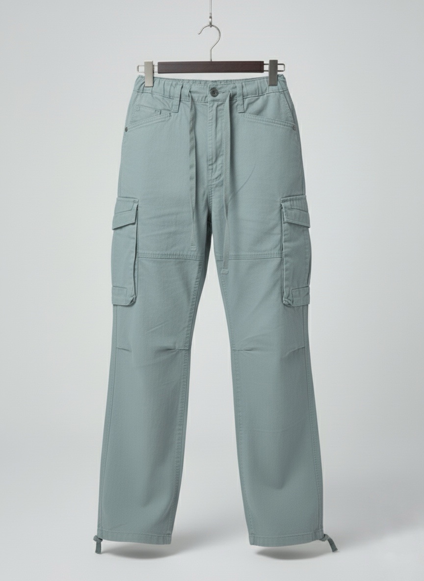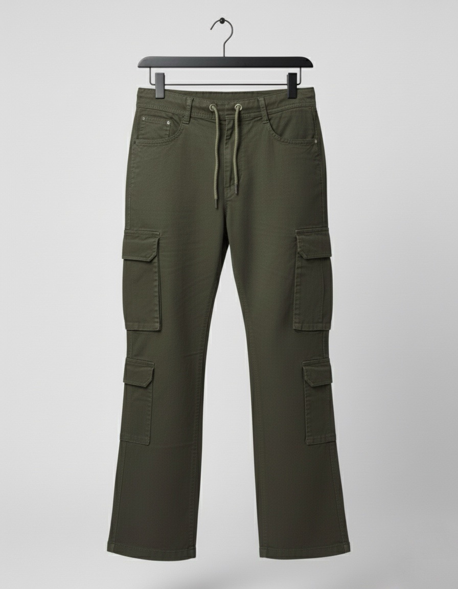 Drawstring Comfort: Olive Green Loose-Fit Cargo Trousers