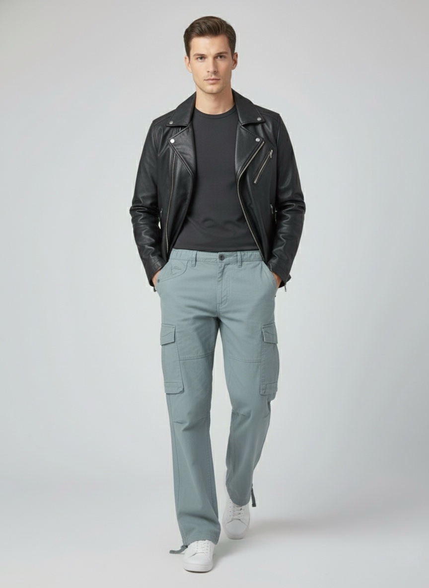 Elevated Utility: Light Gray High-Waist Cargo Trousers