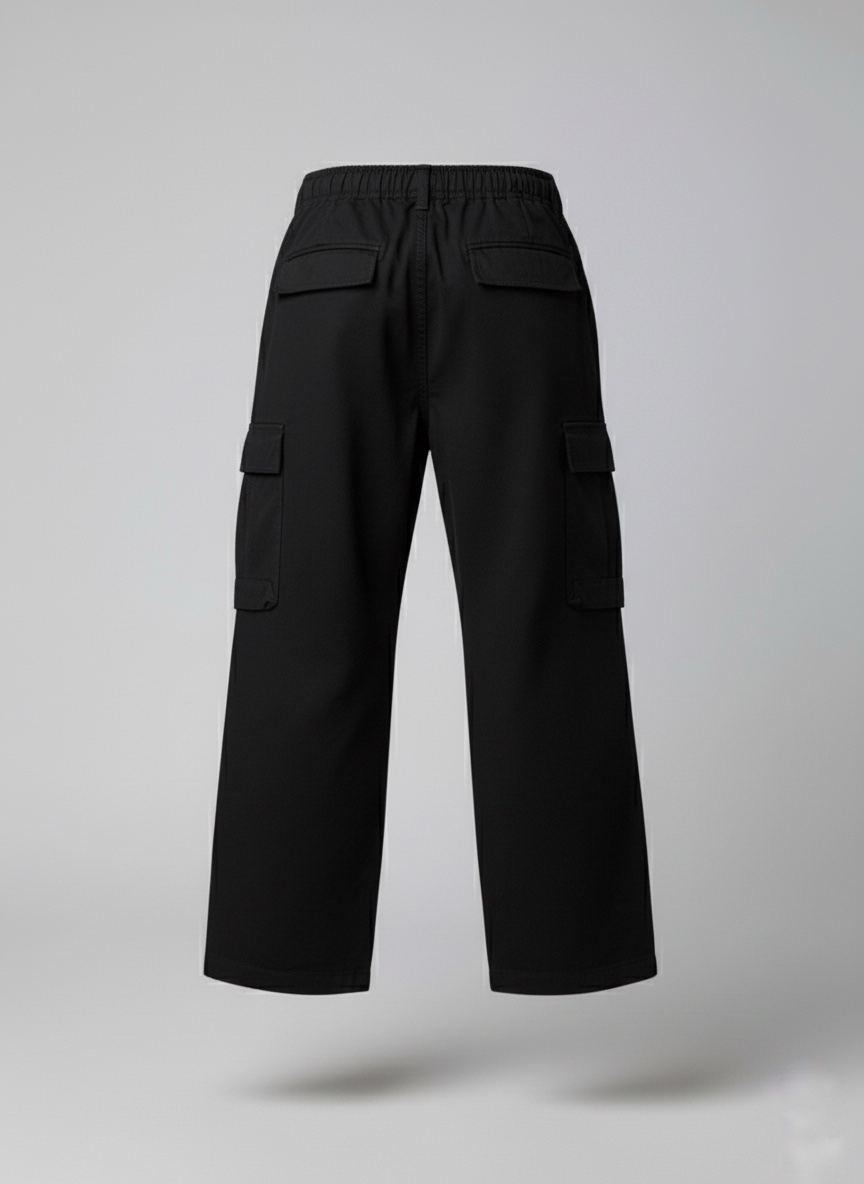 Black Multi-Pocket Straight-Leg Cargo