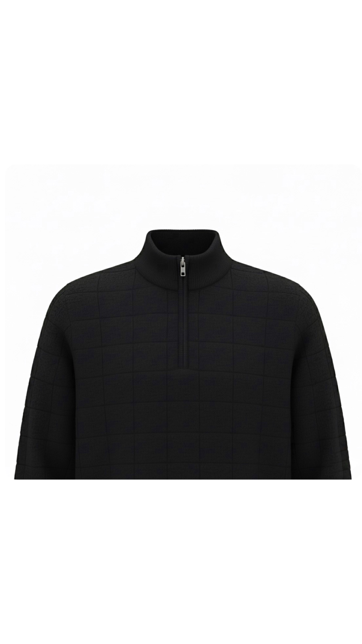 Upgrade your casual wear with this elevated black jumper. It features a sophisticated tonal square pattern created by alternating knit textures, adding depth and visual interest without being loud. The mock neck zips up for warmth and style. Its solid color and tailored fit make it incredibly versatile—ideal for the office, a weekend out, or as a sharp alternative to a sweatshirt.