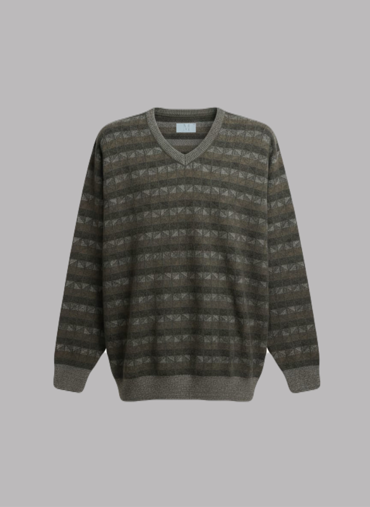 Earth Tone V-Neck Sweater with Checkered Pattern Copy Copy