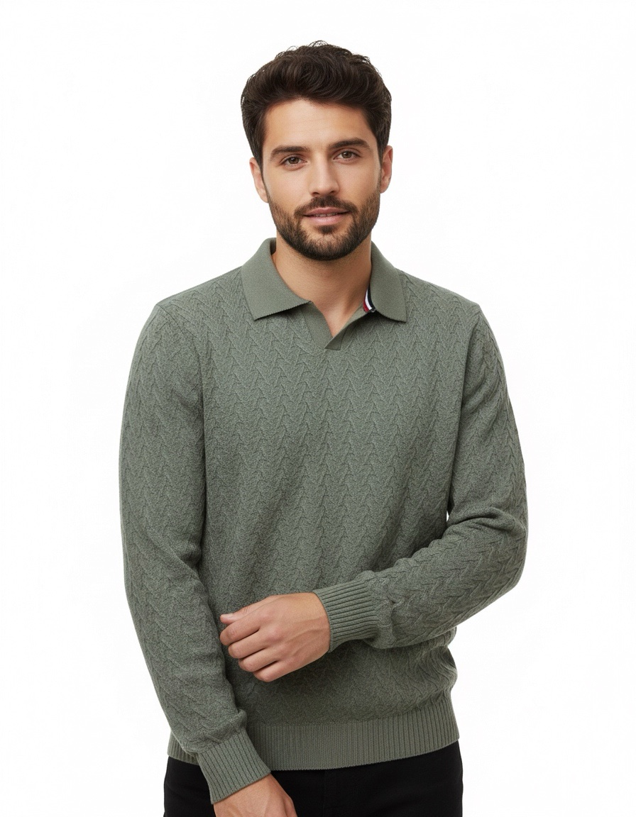 • Polo Collar Design: A refined knitted collar for a smart, casual look.