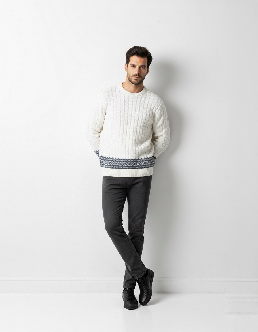 Cable Knit Fair Isle Hem Sweater